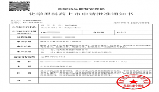 开门红!!译码当先医药帕利哌酮原料药成功获得国家药监局注册批准2026-03-30